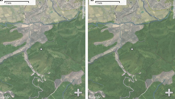 Images: Google Sat as base map, Open Topo Map as overlay (75% opacity).