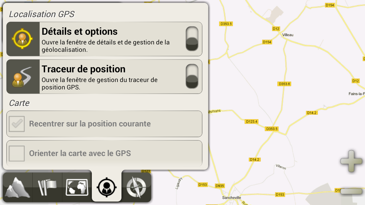 If you turn the device, the AlpineQuest menu will be adapted to be displayed at the bottom left side of the screen. This is the screen orientation, which is managed by Android himself (you can use applications such as ES Task Manager to disable this feature).