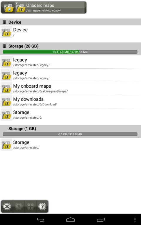 I have a Nexus 7 (2013) with 32Gb storage and about 12Gb of .qct map files. At the moment I have all the files loaded onto the Nexus and everything seems to work fine. However, the memory of the device is getting pretty full so I'd like to remove the qct files to either a USB stick or SD card that I can access via an OTG cable. I have put a few qct maps onto a stick that I have previously read other files from using OTG but I can't find a way to get AlpineQuest to 'see' the qct files on the stick.
