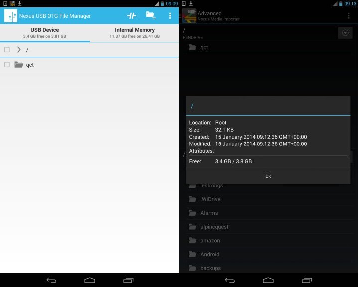 Thanks for your prompt reply. I have hooked up the USB stick via OTG, navigated to it using three different file managers to be sure the contents are accessible by the Nexus, but when I look for it in AQ I'm afraid I still don't see it. Attached is the AQ screen I see when the USB is connected. Am I looking in the wrong place or is there something else I need to do? Sorry to have to ask again. Thanks for your help.