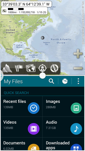 AlpineQuest already supports Samsung's multi-window system (see screen shot on a S5), and OfflineMaps will in the next update.