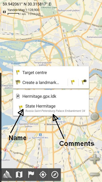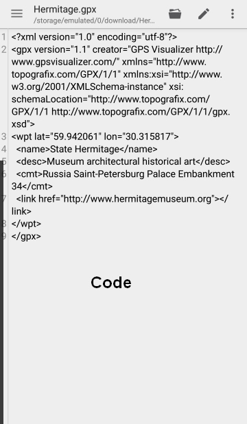 Now let's have a look at how AlpineQuest displays it: name —> comment —> description