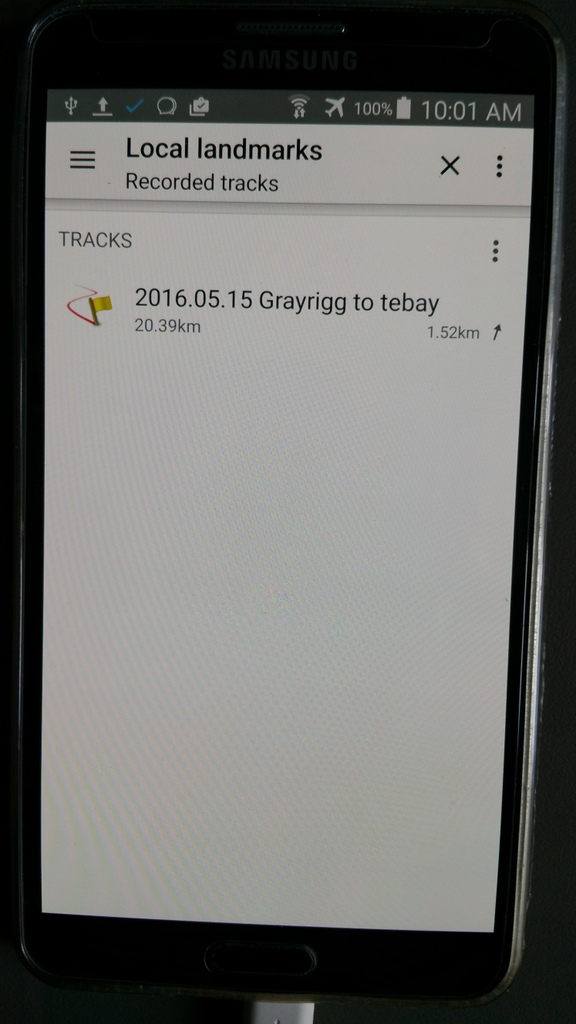 I then connect my phone to my laptop and look at this file (which is not shown in Exported Landmarks) with a view to copying to my computer. The file is labelled as track_20160515_132805_2016.05 and is not a gpx file and doesn't have the name I have given it. I have tried exporting again using one of the other formats e.g. kml and curiously when I try to look at these files on my laptop I can only see one file - the same one labelled even though I have exported several times. If I look at the files using a file manager on my phone I can see the different files exported and they are labelled as track_20160515_132805_2016 (2).05 and track_20160515_132805_2016 3) .05 etc, but they are not designated as a gpx, or kmx or kml file. In the folder Recorded tracks the track is labelled as track_20160515_132805_2016.05.15_grayrigg_to_tebay. The latter part of this name is the specific name I have given this track.
