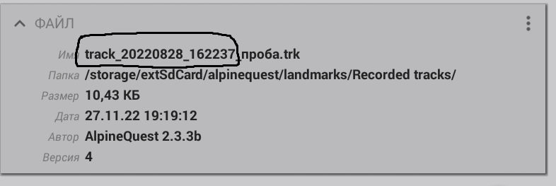 a) остается дата создания и еще какие то цифры в имени файла трека? фото