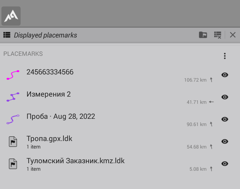 В настоящее время вместе могут отображаться только путевые точки, сохраненные в папке.