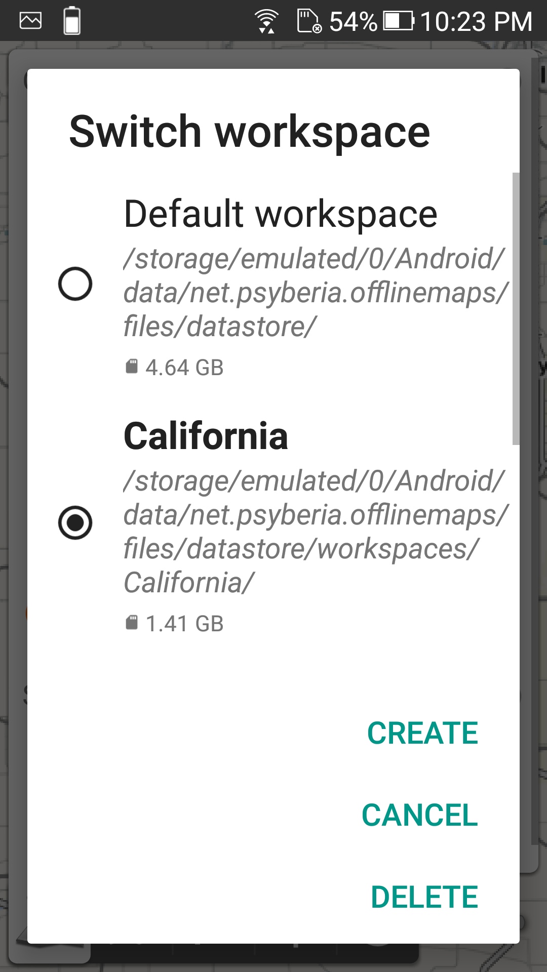 Now there needs to be a new radio button at the bottom called "new workspace". And when this radio button is selected, the delete button becomes dimmed, and the create button becomes bright.