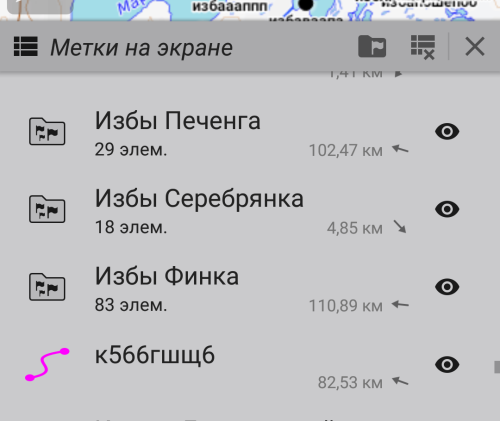 Below is a screenshot. The text is in Cyrillic, but it's the Displayed placemarks window.