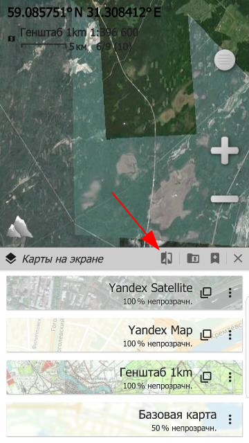 2. Displayed maps – to add a new button "Compare maps" close to "Available maps" and "Save as favourite" buttons. The red arrow indicates where. Sorry for the Russian screen.