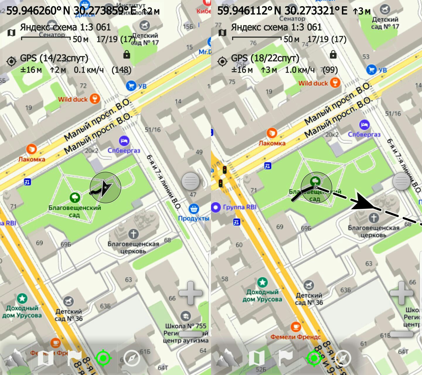 A little addition to my question. A discussion broke out on 4pda. It's not so much about the presence or absence of an arrow, but more about the fact that when you stop (there is no movement), the arrow begins to move randomly in different directions.