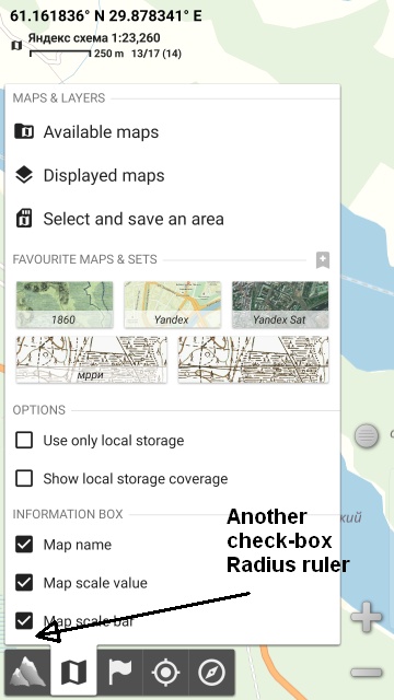People from 4pda Russian forum offered an idea to add a scale display as concentric circles (radius ruler). I think it's a very useful idea to show scale from the screen center icon.