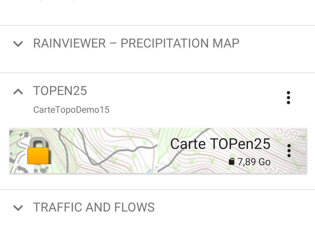 J'utilise presque toujours la carte1 (1 à 15) pour laquelle j'ai téléchargé/stocké une zone complète assez grande, avec l'avantage (contrairement aux cartes Mobac) de pouvoir être mise à jour fréquemment via AlpineQuest.