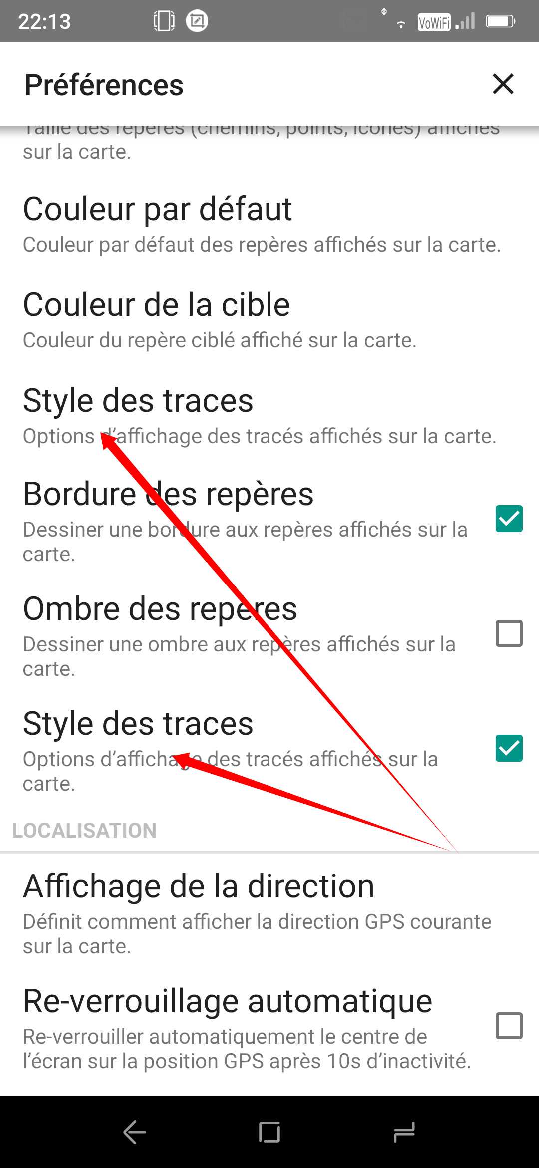 Je trouve que la présence en double du Style de trace dans les préférences pose un problème de compréhension ...