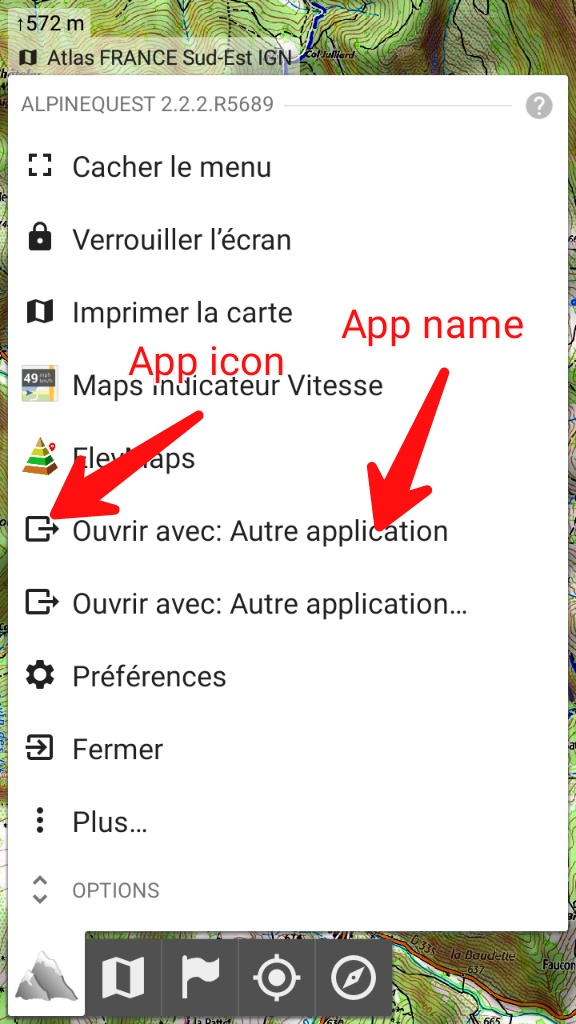 Mais avant, quand je selectionnais une appli par défaut dans le menu principal en ajoutant un bouton "Ouvrir avec" comme raccourci, celle-ci apparaissait dans le menu avec le libellé "Ouvrir avec Elevmaps" ainsi que son icône.