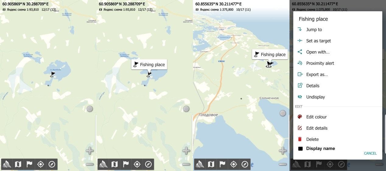 I would like to propose a feature to display a placemark name on the screen as a popup window. Now a popup window appears after pressing on a placemark and disappears later. I propose to set an option to see this popup window any time for every placemark. The idea is to make a separate option in the placemark properties called for example Display name or Display in popup window or a kind of this with a check and uncheck option to set this popup window displayed or undisplayed on the screen. I think this option can be very useful as it is, especially when users do not allow to display placemark labels (PLACEMARKS → Options → Placemark labels check/uncheck) but they need to see several labels (i.e finish or some other place) on the screen. A popup window is better for comprehension and it is very well seen on the map. Every user can set popups for any placemark he needs from the variety of placemarks actually displayed on the screen as usuall blue circles of even icons.