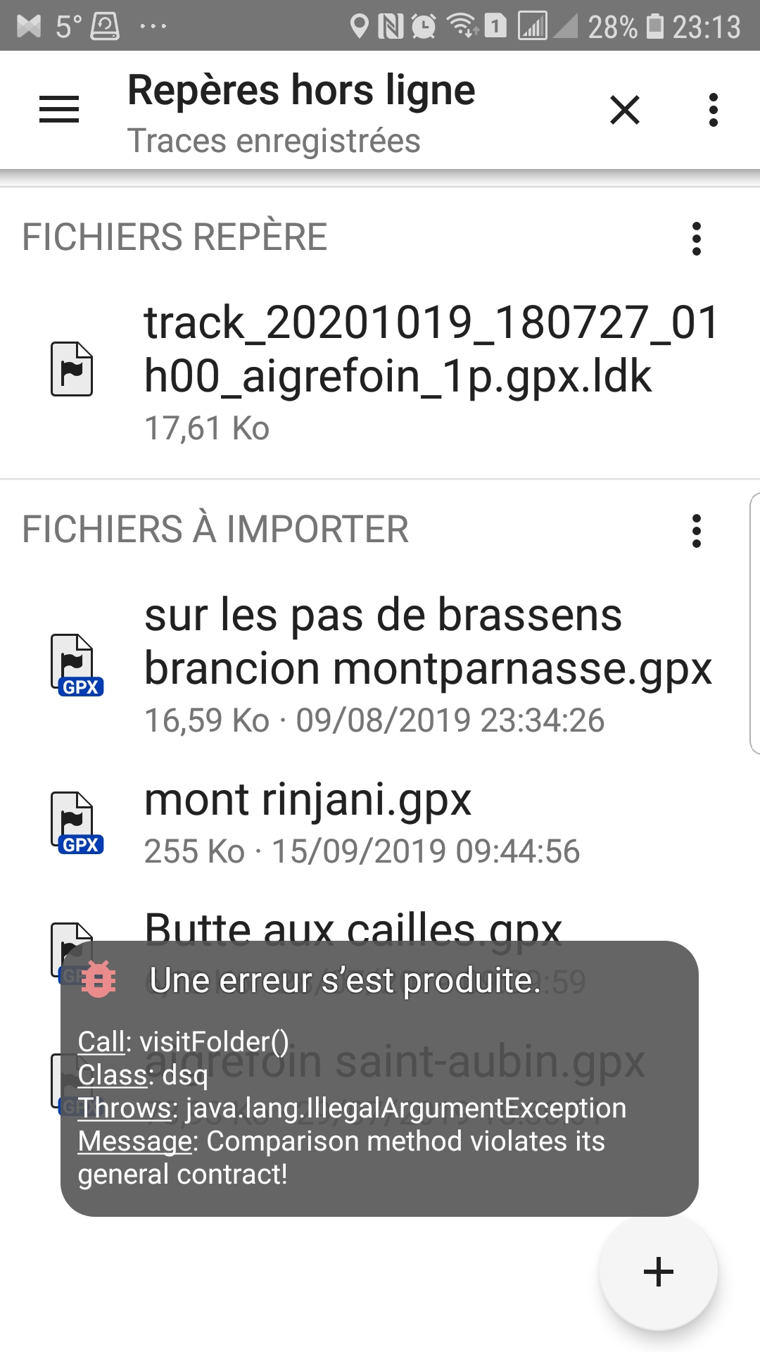 j'ai enregistré 211 traces que je consulte régulièrement . J'ai a présent une erreur quand je clique sur "Traces enregistrées" : j'ai un message d'erreur ( image jointe en bas du post ATTACHMENTS) .