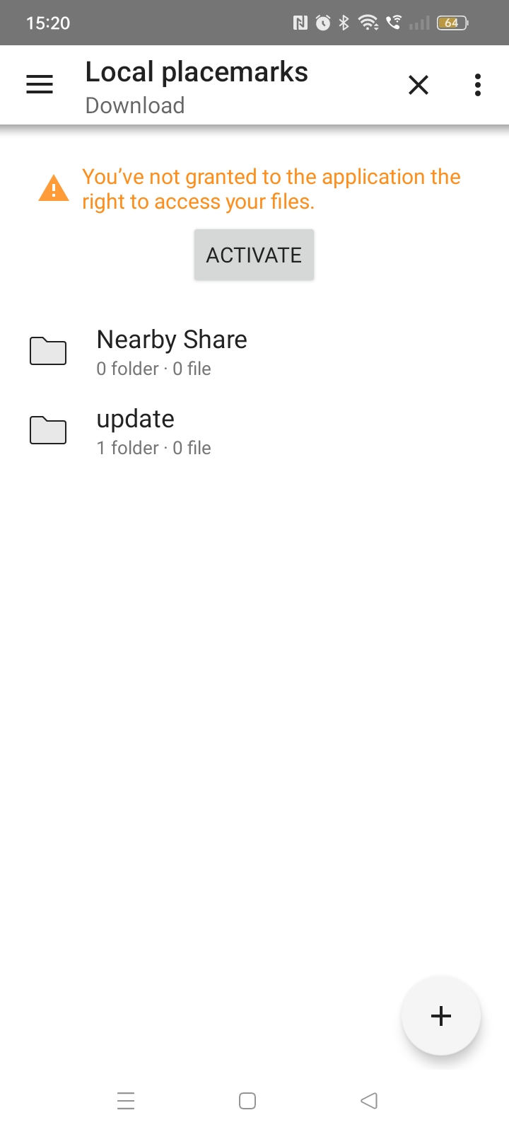 "You've not granted permission to access files" (when trying to download from phone storage. See screenshot. Second screenshot shows the nest popup after pressing "Activate". Third after you have pressed "settings" No apparent way to set permission to access storage? Any ideas how to get around this?