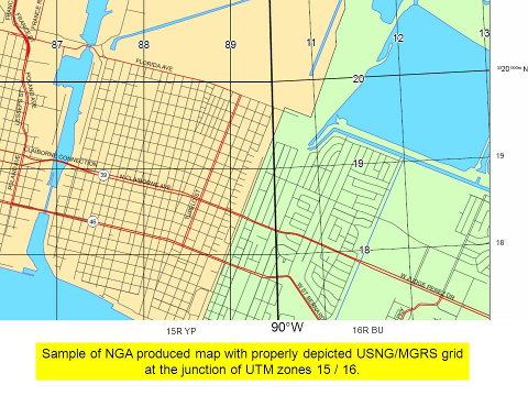 - The MGRS grid changes direction every 6° of longitude, so your map will only be aligned in a particular area (you can see on the image below a junction between two grid squares that the grid lines are not stable).