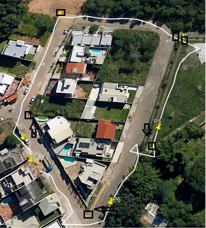 Para minha surpresa, em dois testes q fiz após a compra vi que a trilha e os pontos ( q necessitam precisão para calcular área desmatada por exemplo) NÃO possuem precisão, chegando a quase 6 metros fora do ponto (P1 a P6). Os quadrados em freto foi o ponto em que registrei com minha camera de celular o ponto de referencia.